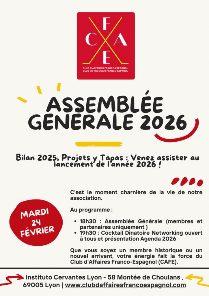 L’Assemblée Générale 2026 du Club d’Affaires Franco-Espagnol de Lyon (CAFE) llega dentro poco !